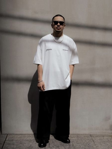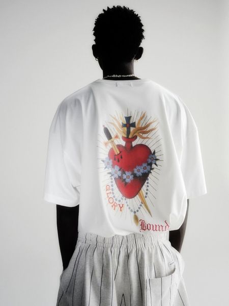 Jakob Morley とのコラボレーション。使用したアートピースはCootie Productions とのコラボに向けたオリジナルの描き下ろし作品。柔らかくしっとりとした風合いのオリジナル天竺を使用。ワイドシルエット。