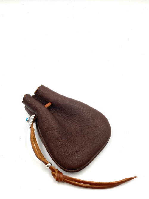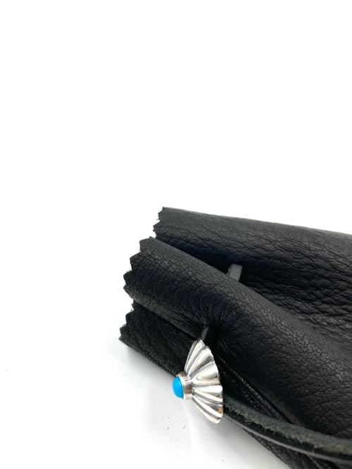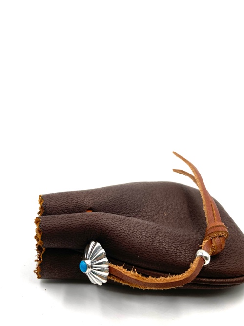 LARRY SMITH(ラリースミス)のディアスキンポーチ-DEER SKIN POUCH-になります。極上の素材感を誇るディアスキンレザーで仕上げられたポーチ。ターコイズコンチョで開閉できます。お好きなアイテムでカスタムしてみてください。ジュエリーケースや印鑑ケースなどの用途で使用できます。
