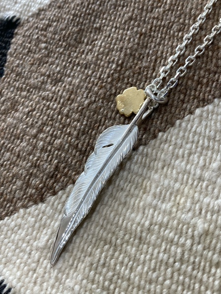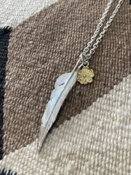 LARRY SMITH(ラリースミス)のコンビネーションネックレスNo.105になります。ネックレストップのナタバネフェザーと 18Kローズペンダント-18K GOLD ROSE PENDANT M- をネックレスチェーンで組み上げたネックレスになります。(*2025年4月価格改正)