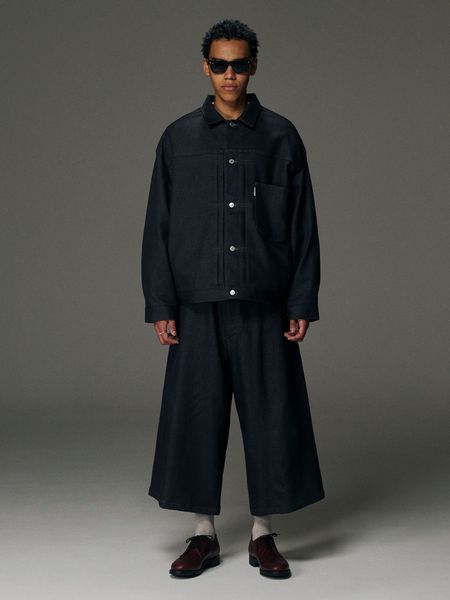 COOTIE PRODUCTIONSの25SS新作"Reverse Loop Denim Jacket (Type 1st)"になります。経糸、緯糸を通常のデニムの糸使いでドビー織機によって織り上げたオリジナルファブリックをリジッドで使用。裏糸はループ調でふんわりとしたタッチを持つ。ワイドシルエット。