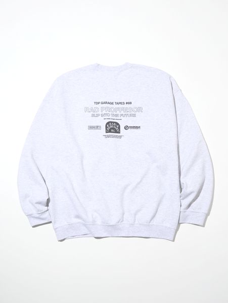 RADIALLの2025MID WINTERの新作”E=Mc2 ”になります。裏起毛のクルーネックスウェット。ミストブリーチ加工を施しているため、着古した生地感と色合いが特徴です。25SSで好評だった「E=MC2」のグラフィックが摺り切りのラバープリントで入ります。