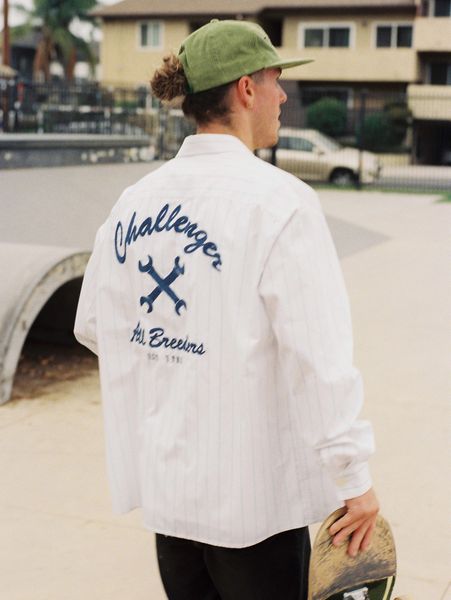 CHALLEGER / L/S STRIPE MECHANIC SHIRT -White-