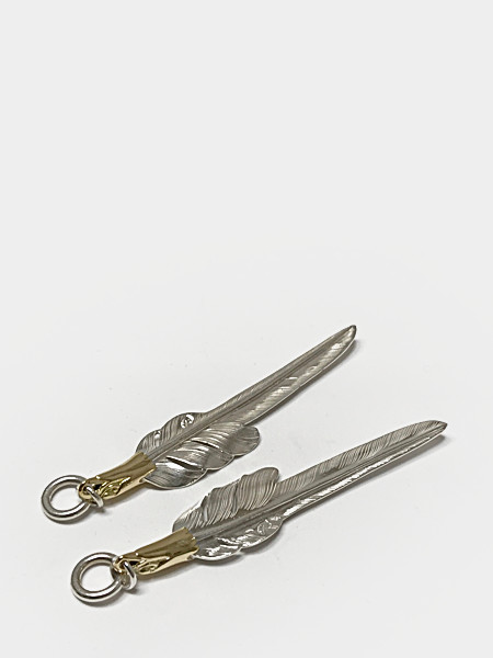EAGLE HEAD KAZEKIRI FEATHER PENDANT No. 47 LARGE 18K GOLD ACCENT -LEFT-