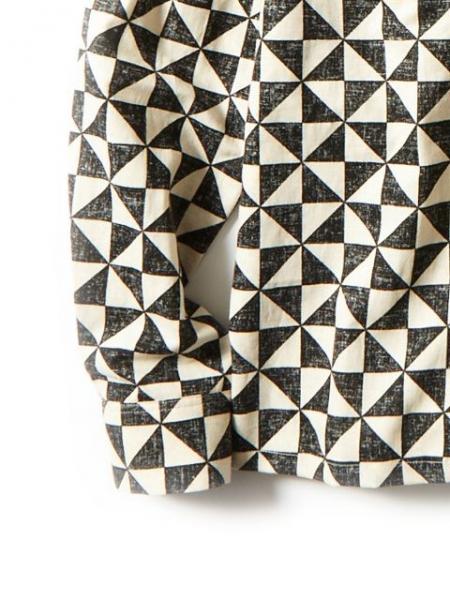 RADIALL(ラディアル)の2015SS新作のオープンカラーシャツ"TRIBE L/S"になります。この風車柄は、ナバホ族の幸運のマークとされるスワスチカ(卍)をRADIALL風に解釈し、風を運ぶ風車ととらえ総柄として落とし込みました。数シーズン前は、ダイヤ柄の総柄シャツがリリースされましたがそのアイテムに近い雰囲気に仕上がっています。