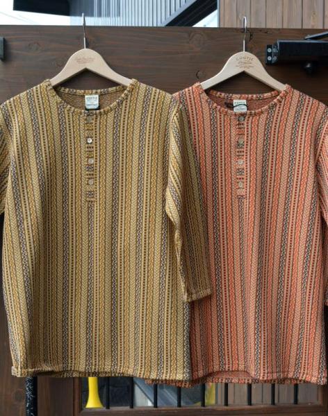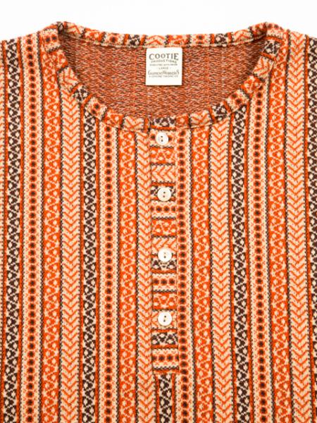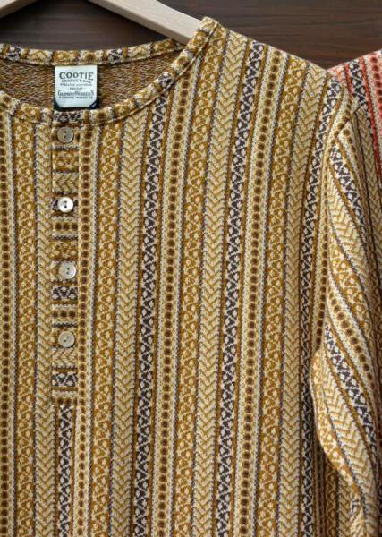COOTIE新作のヘンリーネックTシャツです。ヒッピー色の強い柄を全体に織り込むで作りこまれた1枚。今季はレースアップシャツとのレイヤードスタイルがFIXER一押しえす。またJunkman HatにBaja Vestの組み合わせた洒落たルンペンスタイルもお勧め!