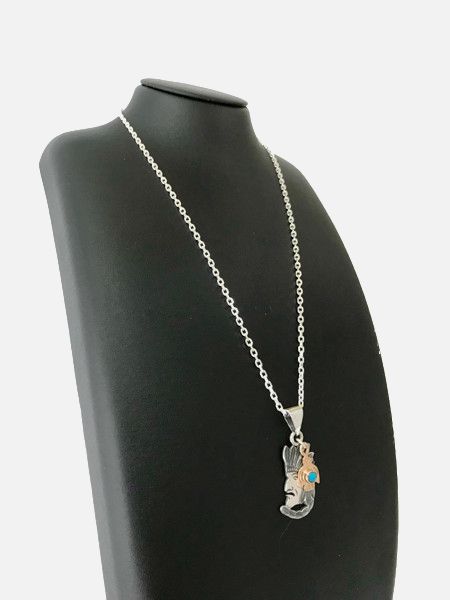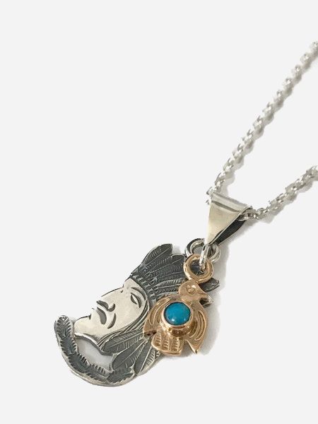 LARRY SMITH(ラリースミス)のコンビネーションネックレス-COMBINATION #27-になります。BRAVE MANネックレストップに18K AKAGANE(ピンクゴールド)のサンダーバードネックレスをレイヤードしたコンビネーションネックレスです。ピンクゴールド、シルバー、ターコイズのバランスがGOOD。