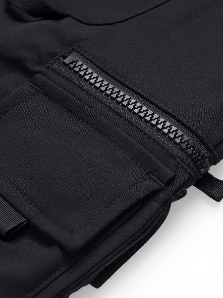 アジャスト可能なウエストベルト、リフレクティブラベル、ジップフライ。シルエットはリラックスフィットになります。