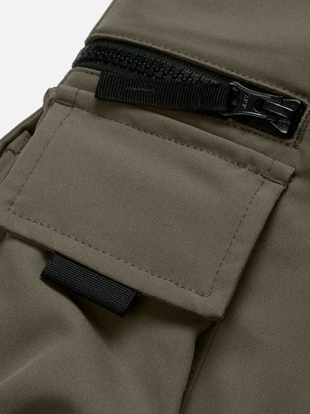 アジャスト可能なウエストベルト、リフレクティブラベル、ジップフライ。