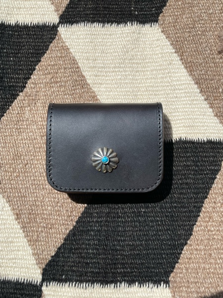 - LARRY SMITH / TURQUOISE SHELL CONCHA CUSTOM COIN CASE -Black-
