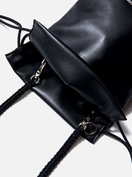 COOTIE / Fake Leather Drawstring Bag -Black-