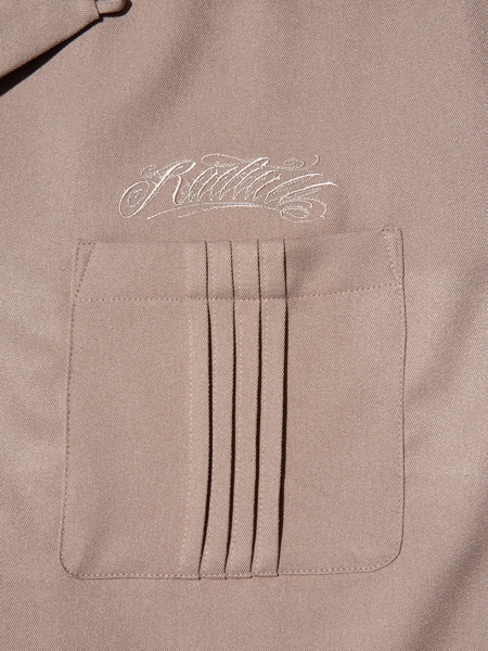 1950'sを意識したラウンドポケットにブランド定番のタックプリーツをあしらい、左胸にはブランドロゴの刺繍が入ります。
