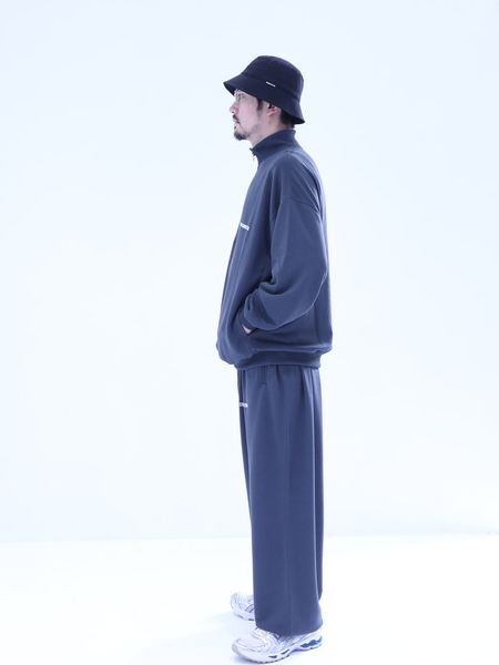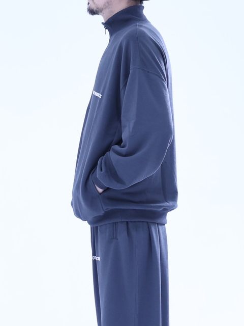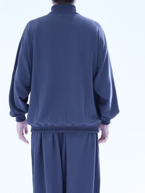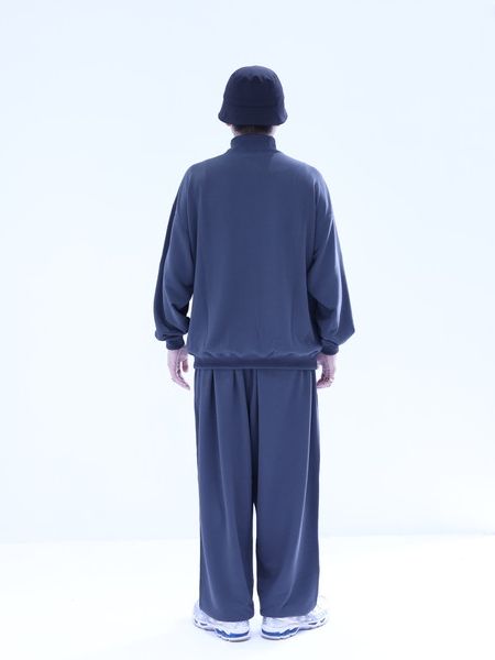 しなやかなドレープと軽さが特徴のポリエステル天竺を使用したハーフジッププルオーバーです。 シルエットはワイドシルエットとなっており、脇接ぎにスリットポケットが付きます。
