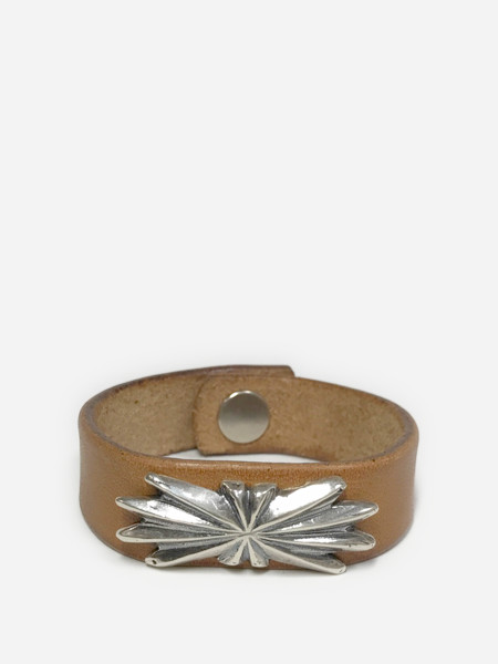 LARRY SMITH / BUTTERFLY SHELL CONCHA LEATHER BRACELET -L.Brown-