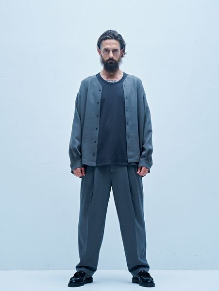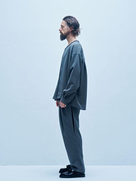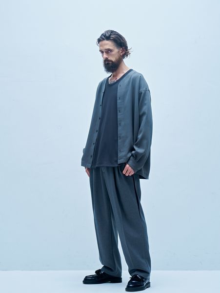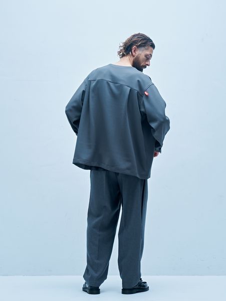 ブランドのエントリーモデルとして定番化したIIKANJI CHILLIN PANTSのデザインバリエーション。シルエットは、太すぎず細すぎない絶妙なテーパードラインで構成され、あらゆるスタイルに自然にフィットするバランス感が魅力。今作は、サイドに配色切り替えのテクニカルパネルを追加。ミニマルな定番フォルムに、ストリートと機能服の緊張感をプラスしたアップデート仕様。素材には、美しい微光沢を持つ日本製の高密度サージ生地を使用。スラックスの品とジャージの快適さを兼ね備えた、ハイブリッドなテキスタイル。ウエストはエラスティックバンドとスピンドルによるリラックス仕様で、日常的な着脱性と快適性を両立している。トレンドに左右されず、長く愛用できる高品質な日本製。ブランドのフィロソフィーを感じさせる、実用と設計の交差点にある一本。